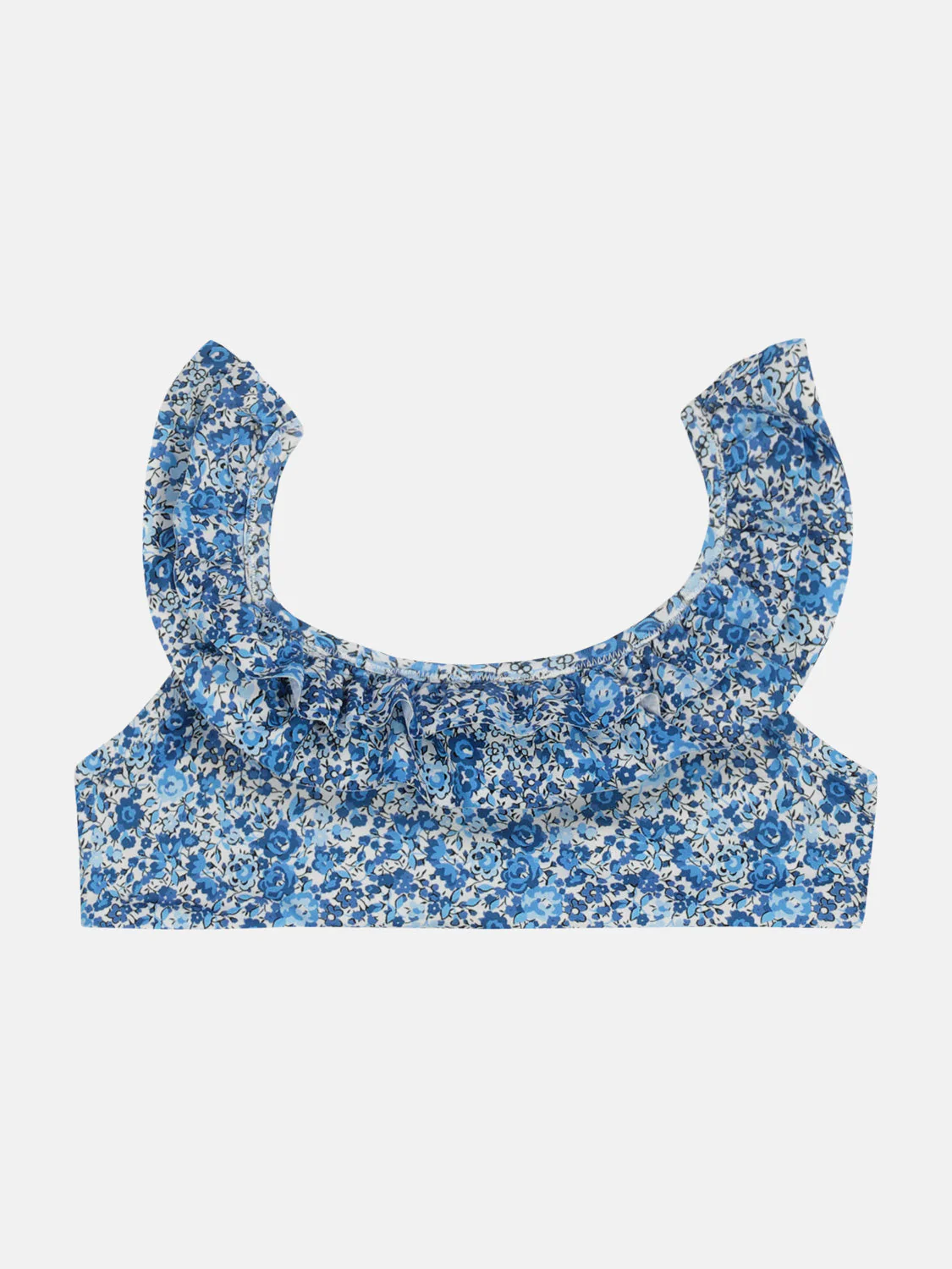 Nuovo Top con doppia rouche sullo scollo in 100% Lycra Liberty. Pattern Liberty in esclusiva mondiale Pesciolino Rosso Beachwear