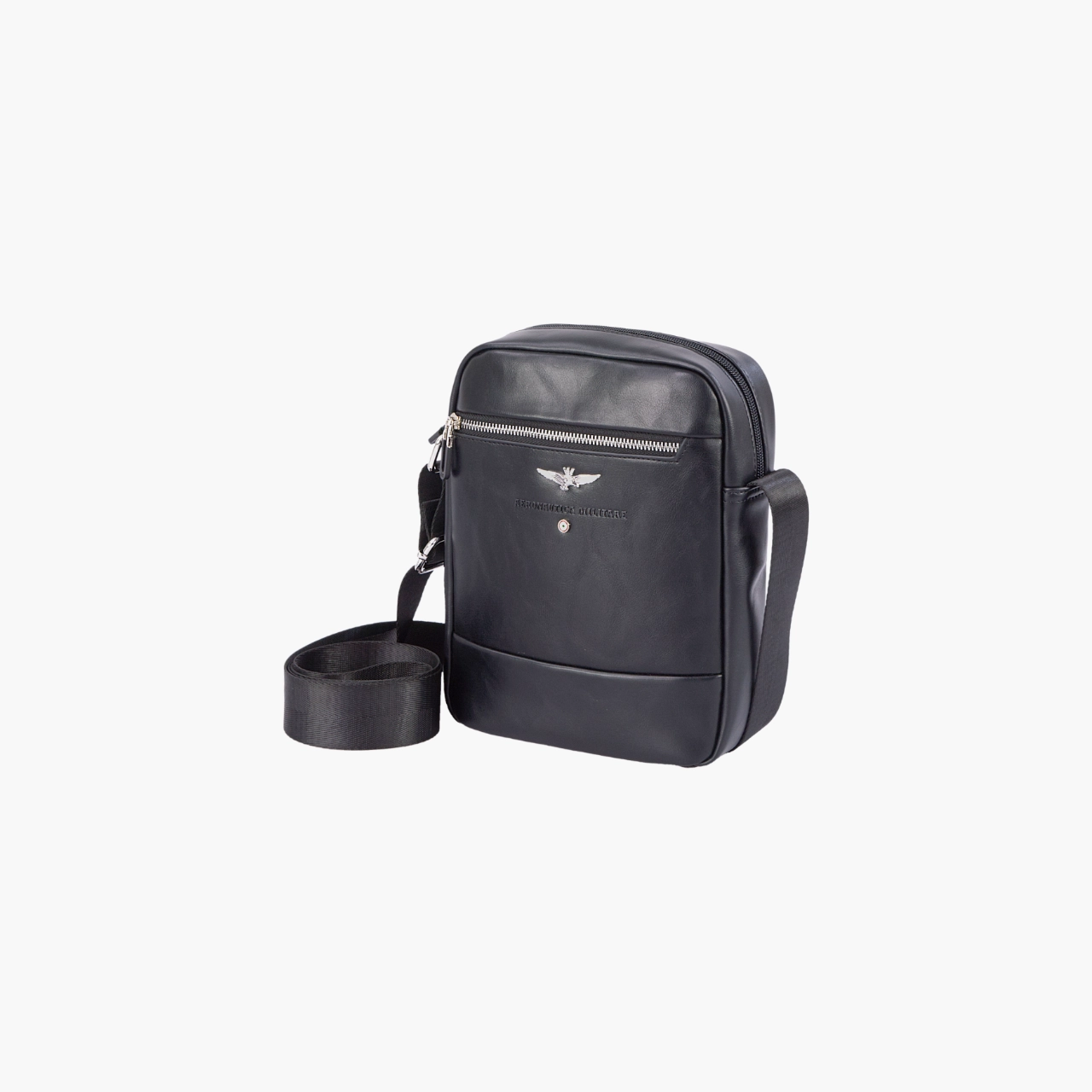 Tracolla grande con zip interna, posteriore e organizer. Questo prodotto presenta dettagli curati, come zip in metallo argentato per un tocco di brillantezza e il logo con un’aquila stilizzata, accompagnato dalla scritta e dal simbolo che richiamano un’estetica di ispirazione militare. Il design minimalista è arricchito da linee pulite e colori sobri come il blu e il nero, ideali per un look versatile e adatto sia a contesti casual che più formali.