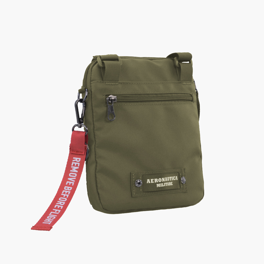 Il prodotto è caratterizzato ulteriormente dal fregio delle Frecce Tricolori e dal portachiavi rimovibile “Remove before flight”. Materiale interno in poliestere camouflage e accessori color canna di fucile.