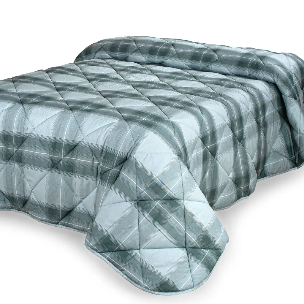 Trapunta matrimoniale double-face in cotone percalle della linea Capoliveri di Zita del Forte. La fantasia si contraddistingue per un disegno geometrico a quadrettoni molto particolare, sui toni del verde. L’imbottitura interna è in fibra sintetica anallergica effetto piuma: calda e morbida, leggera addosso. Perfetta per la stagione invernale è capace di arredare l’ambiente renderlo caldo e confortevole. Interamente Made in Italy.