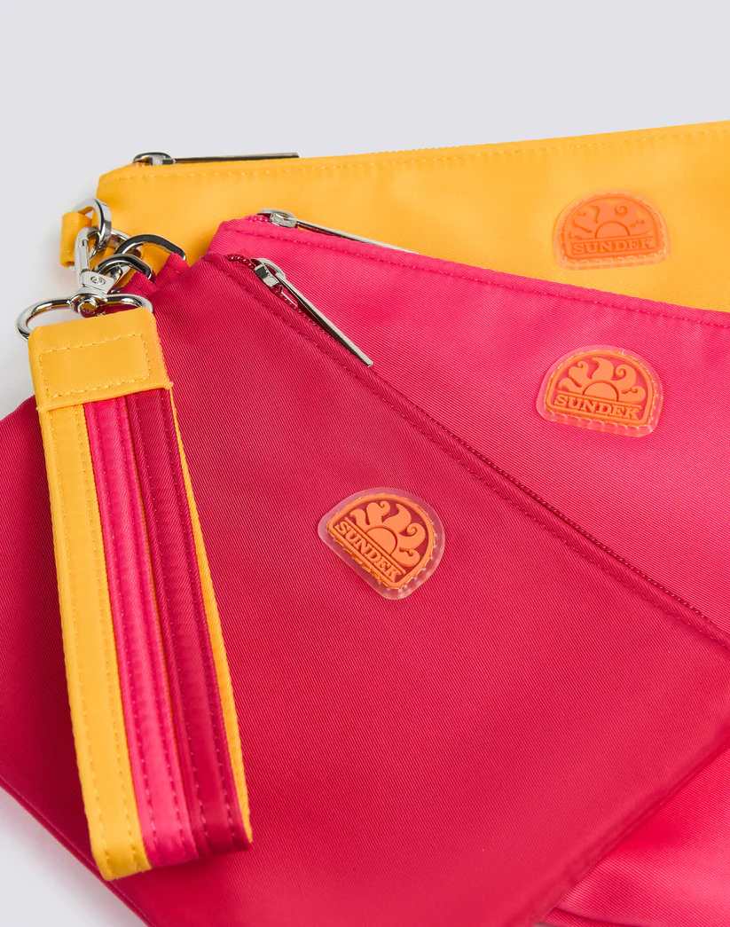 Queste pochette unisex Sundek sono il tuo alleato estivo perfetto! Disponibili in due vivaci combinazioni: fucsia con arancione o celeste con azzurro. Il pratico tris ti offre versatilitร per ogni occasione, mentre la zip e il comodo polsino garantiscono sicurezza con un tocco di stile. Porta con te l’estate ovunque vai!