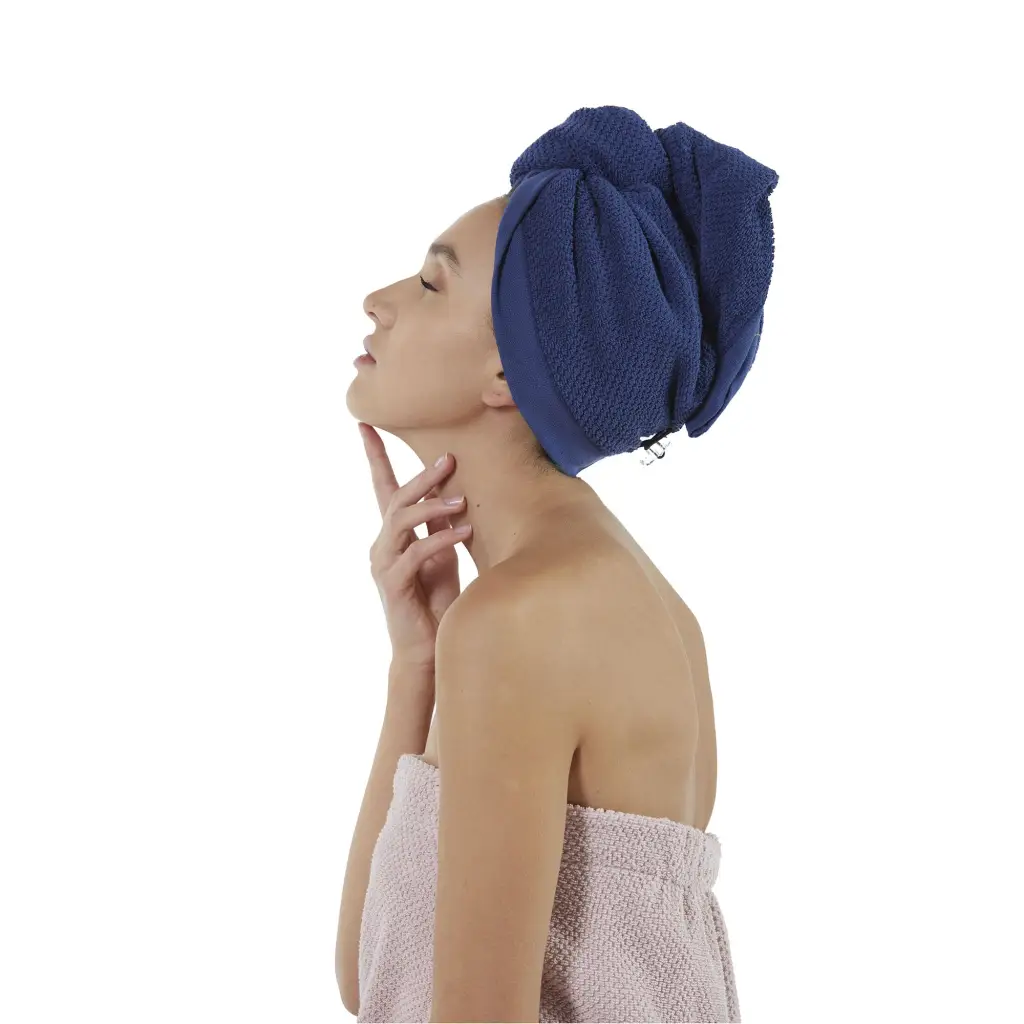 Turbante per capelli in spugna di cotone con lavorazione a Chicco di Riso di Maison Sucrée. Questo turbante è un accessorio che non può mancare nel bagno di una donna e si presta benissimo anche come idea regalo. Molto pratico e funzionale, è realizzato in un’ottima spugna di cotone molto morbida e con una particolare lavorazione a chicco di riso. Il turbante è leggerissimo e con la sua forma a goccia riesce a raccogliere tutti i capelli, inoltre nella parte posteriore ha una chiusura con bottone ed occhiello per farlo rimanere ben saldo in testa senza sciogliersi. Prende pochissimo posto e questa spugna si asciuga molto velocemente, permettendo così di poterlo portare in valigia durante le vacanze oppure in palestra. E’ disponibile in molti colori, dai più neutri ai più vivaci, per abbinarsi con facilità ai diversi stili di bagno.