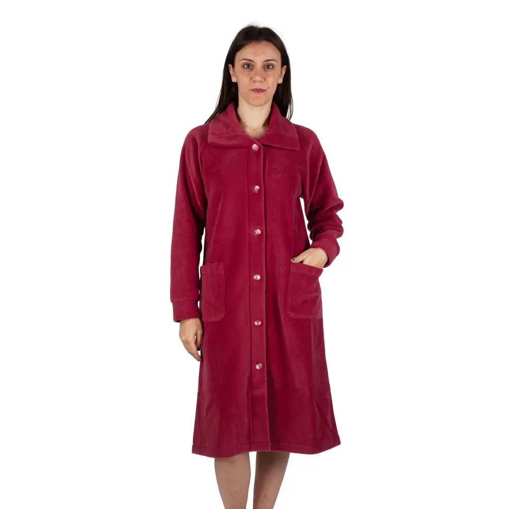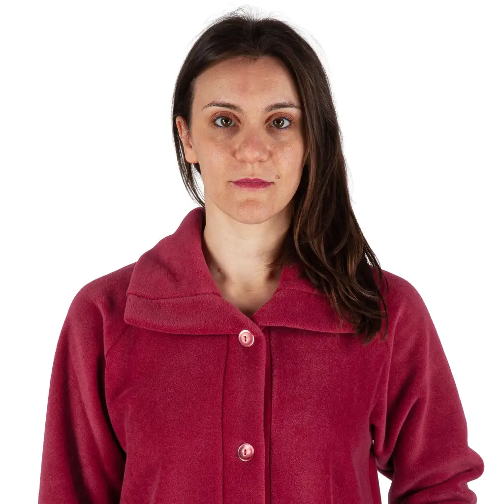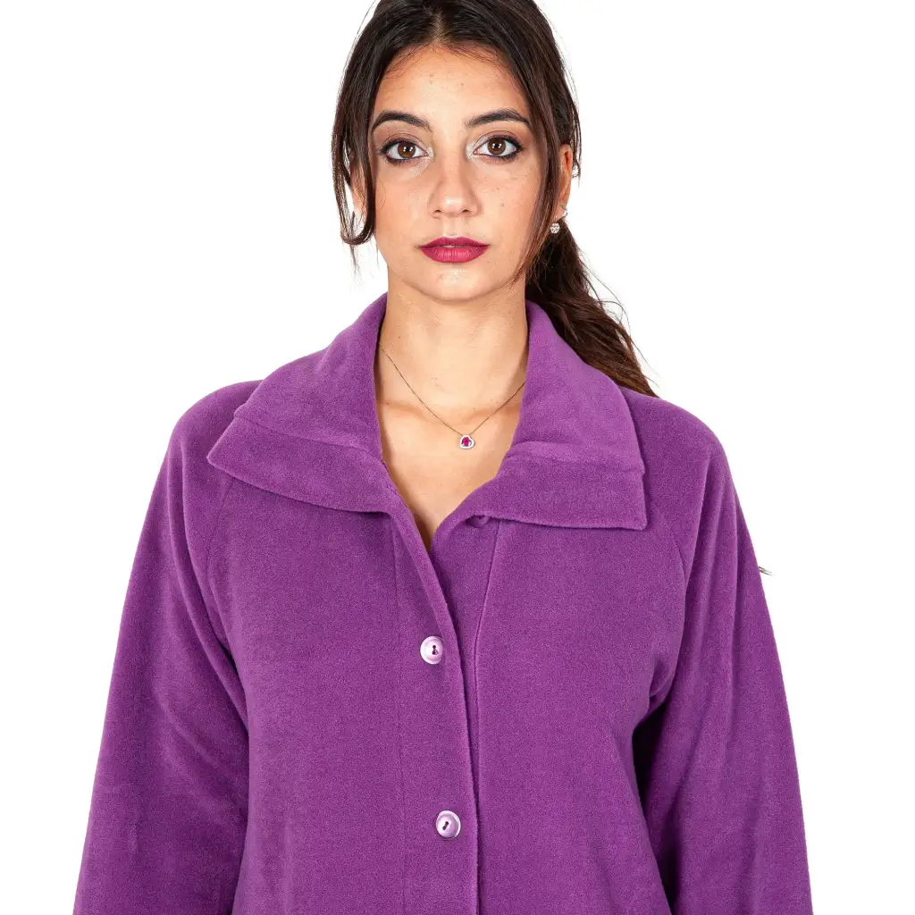 Vestaglia donna abbottonata in pile e viscosa a tinta unita