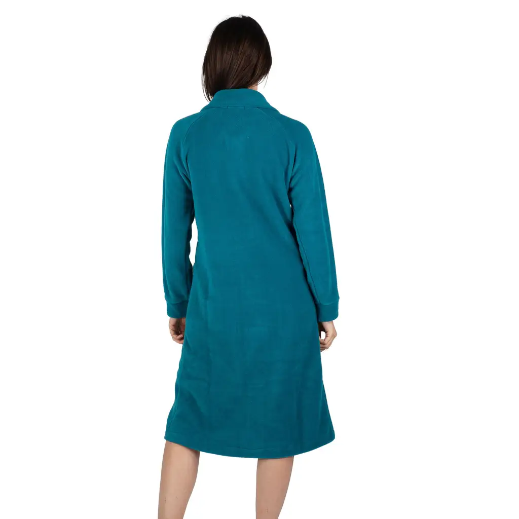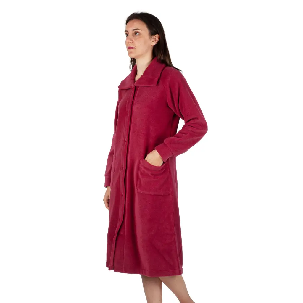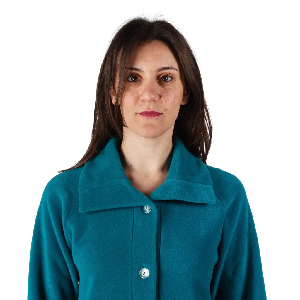 Vestaglia donna abbottonata in pile e viscosa a tinta unita