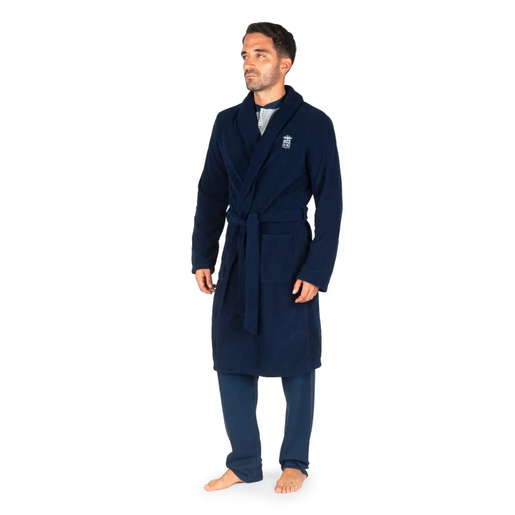 Vestaglia da camera uomo con modello sciallato con cintura in pile in tinta unita della linea Marina Militare. Questa vestaglia da camera è molto morbida e confortevole. Calda grazie al tessuto in pile di altissima qualità, è comoda e perfetta per la stagione autunnale ed invernale. Il modello è un intramontabile classico senza tempo. Della stessa linea in tinta unita è presente anche la giacca sciallata con cintura.