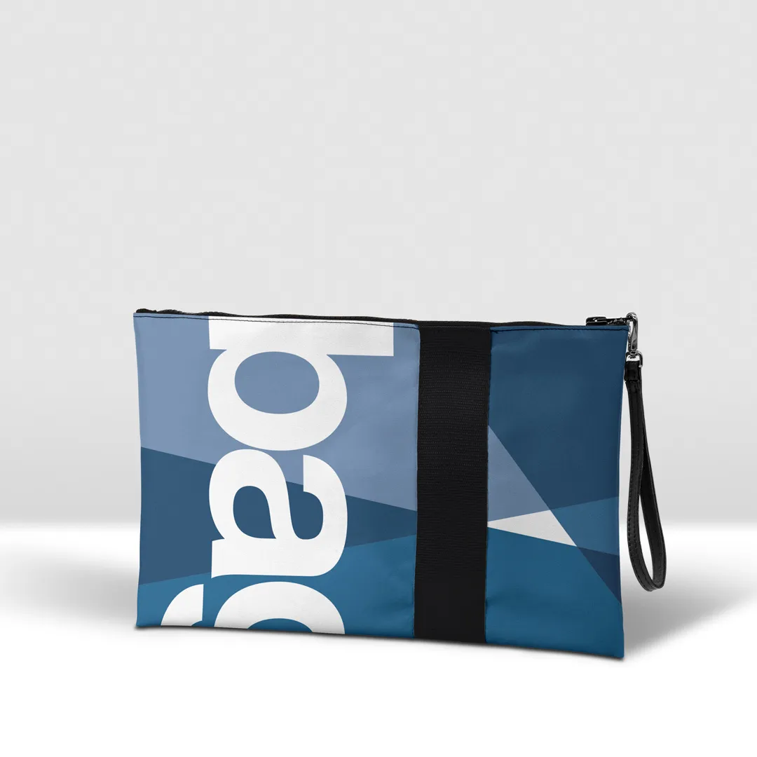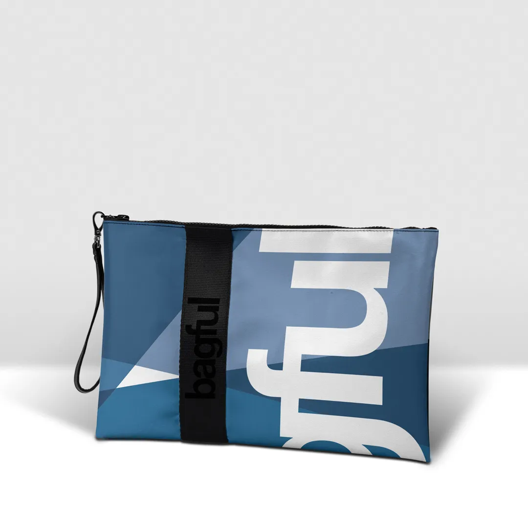 Pochette in banner PVC 560, stampato, con zip pressofusa.