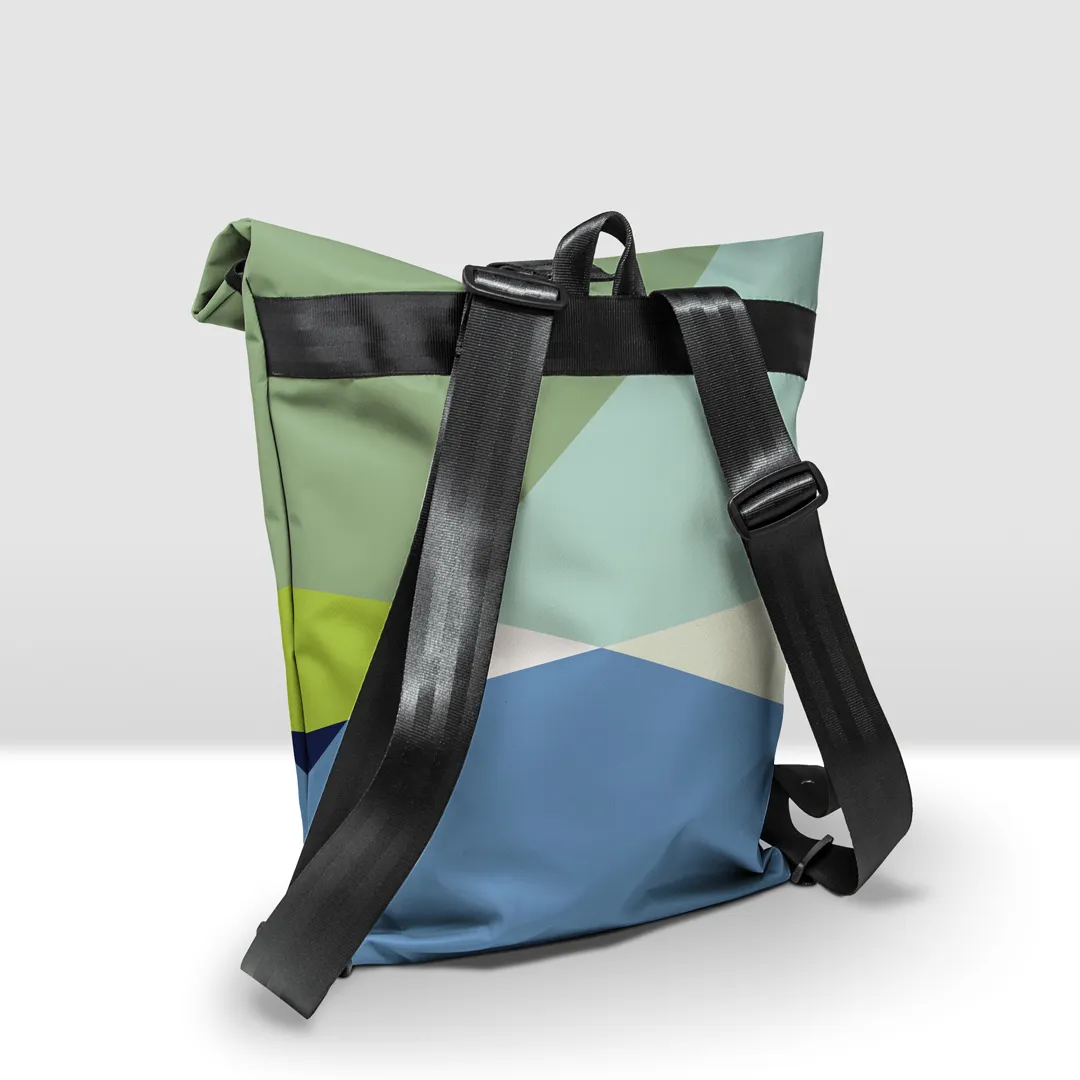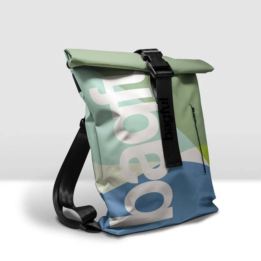 Stampato in banner PVC 560, tasca con zip pressofusa e imbottitura nello schienale e nel fondo.