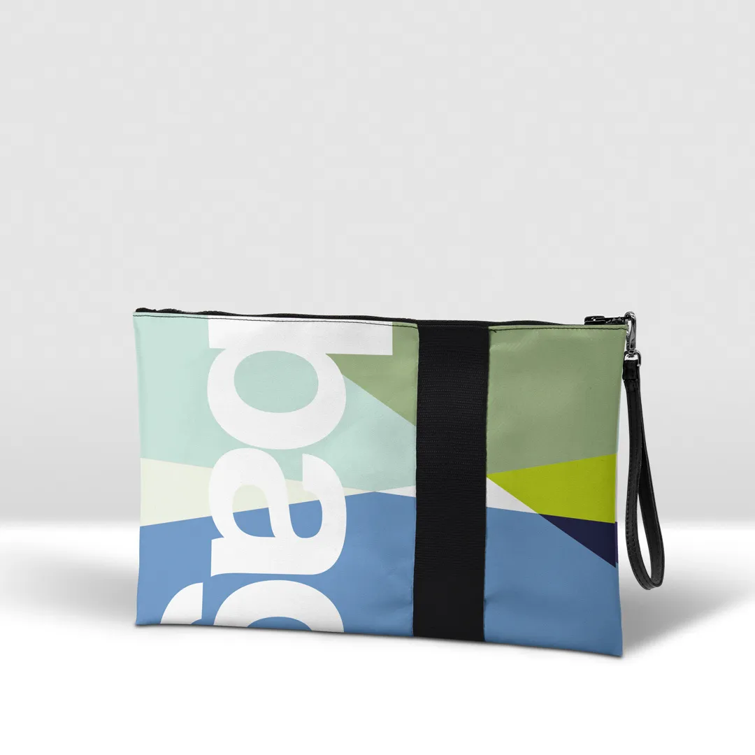 Pochette in banner PVC 560, stampato, con zip pressofusa.