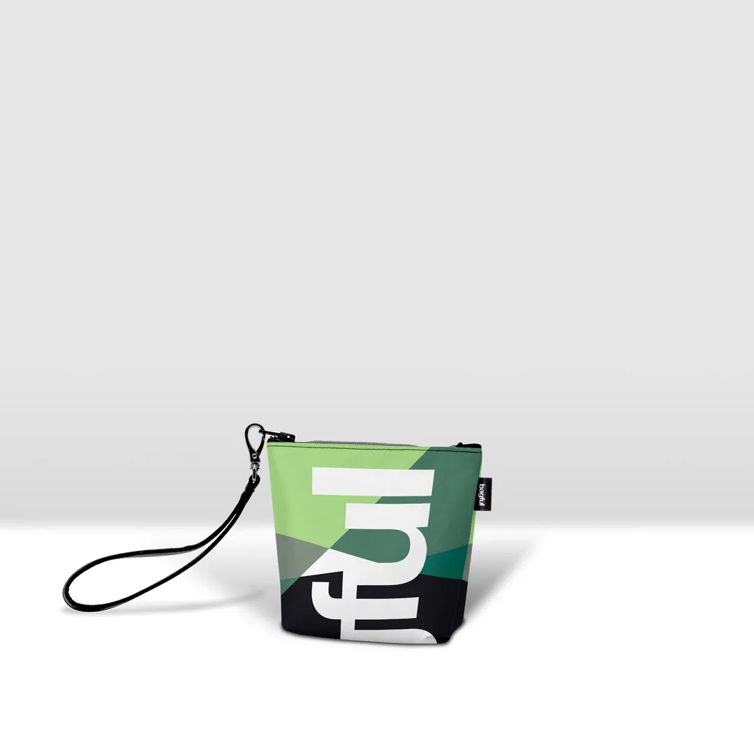 Mini pochette in banner PVC 560, stampato, con zip pressofusa.