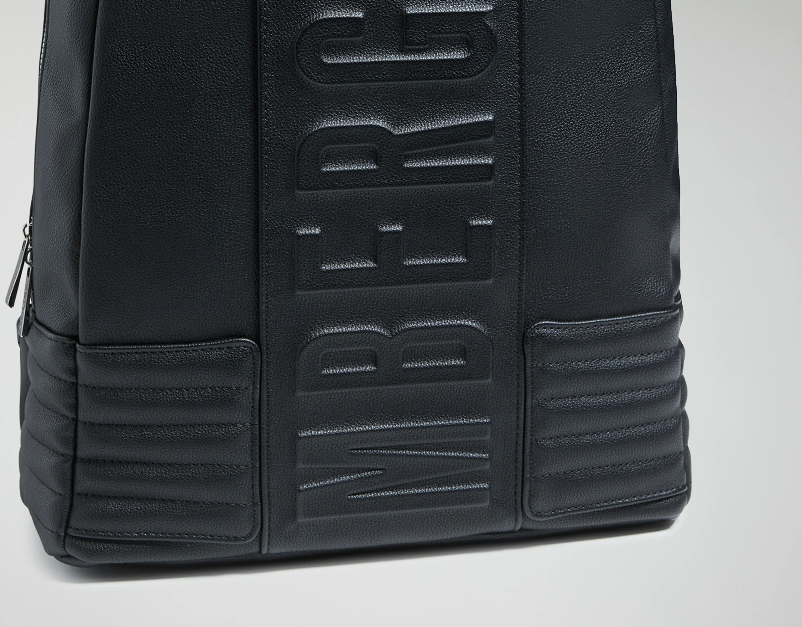 Lo zaino uomo Bikkemberg BKZA00615P, realizzato in elegante ecopelle nera, unisce stile e funzionalitร . Presenta una tasca grande molto capiente, insieme a tasche interne per una migliore organizzazione. Il nome del brand รจ elegante e in rilievo sul davanti, aggiungendo un tocco distintivo e sofisticato.
